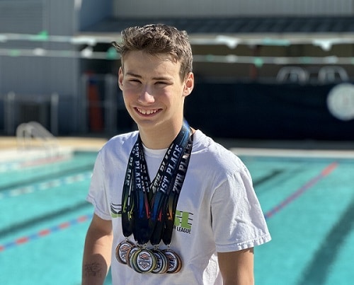 At these high level meets Woodard is racing the best of the best swimmers within the region. Woodard not only qualifies to attend these elite swim meets, he also medals, and takes home the gold.
