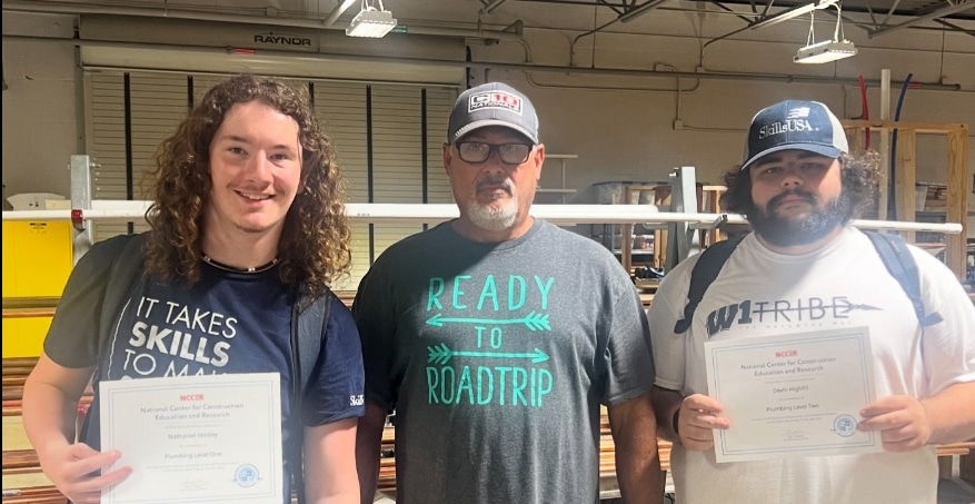 Two of ECTC’s Plumbing & Pipefitting seniors from Wetumpka High School achieved certifications this week. Nathaniel, a second year student, passed NCCER Plumbing Level 1. Devin, a third year student and 2024 Plumbing & Pipefitting Student of the Year, passed NCCER Plumbing Level 2 – the first ECTC student to accomplish this feat since the inception of the program! These industry certifications prepare them both to enter the workforce with more knowledge and skills than your average applicant which means better pay and a faster trajectory to a higher position within a company. #ECTCworks