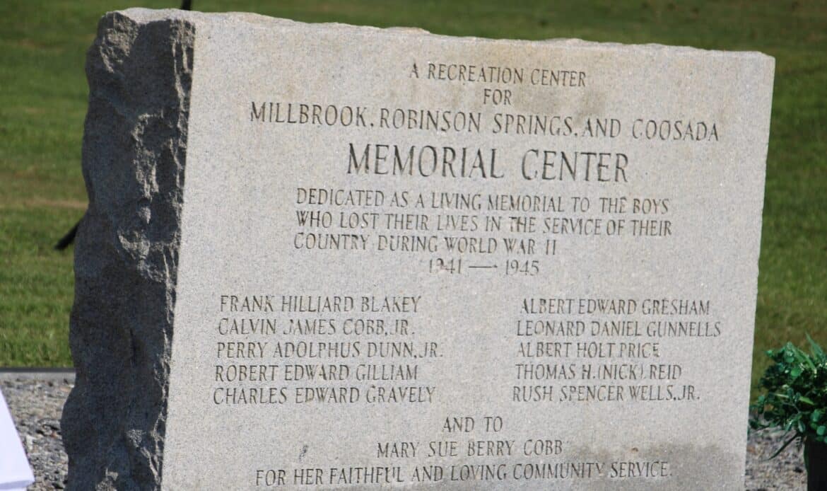 The event will take place at the Millbrook Memorial Center, located at 3168 Park Circle. The Memorial Monument is located next to the Memorial Center, behind Village Green Park.
