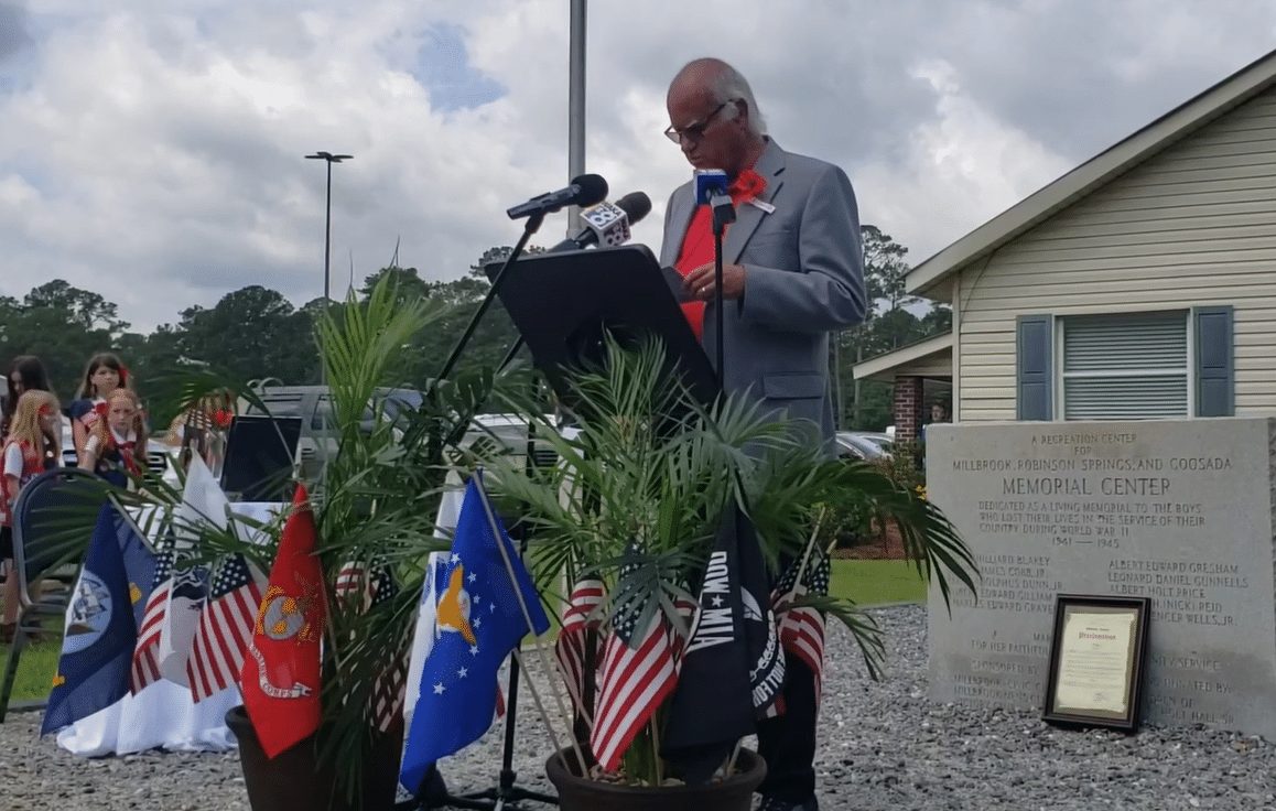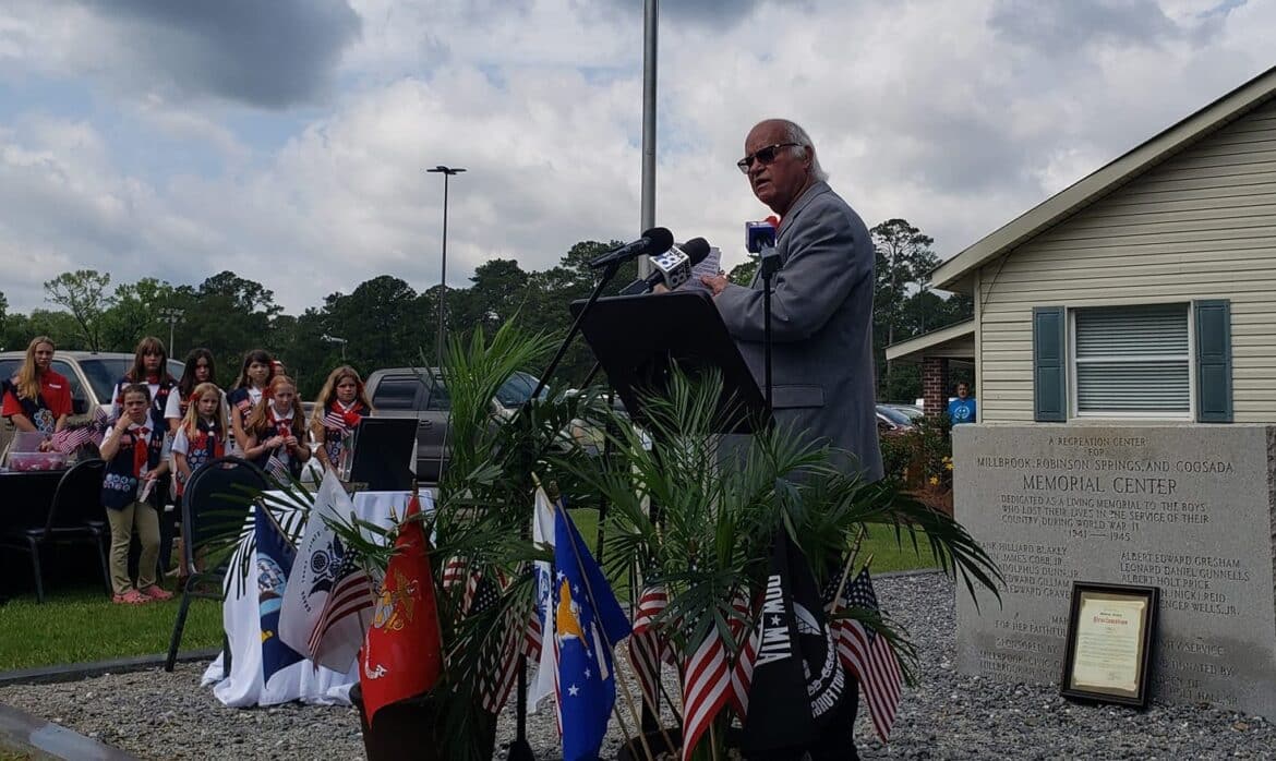 Millbrook Mayor Al Kelley spoke, reading from a proclamation in honor of Memorial Day.