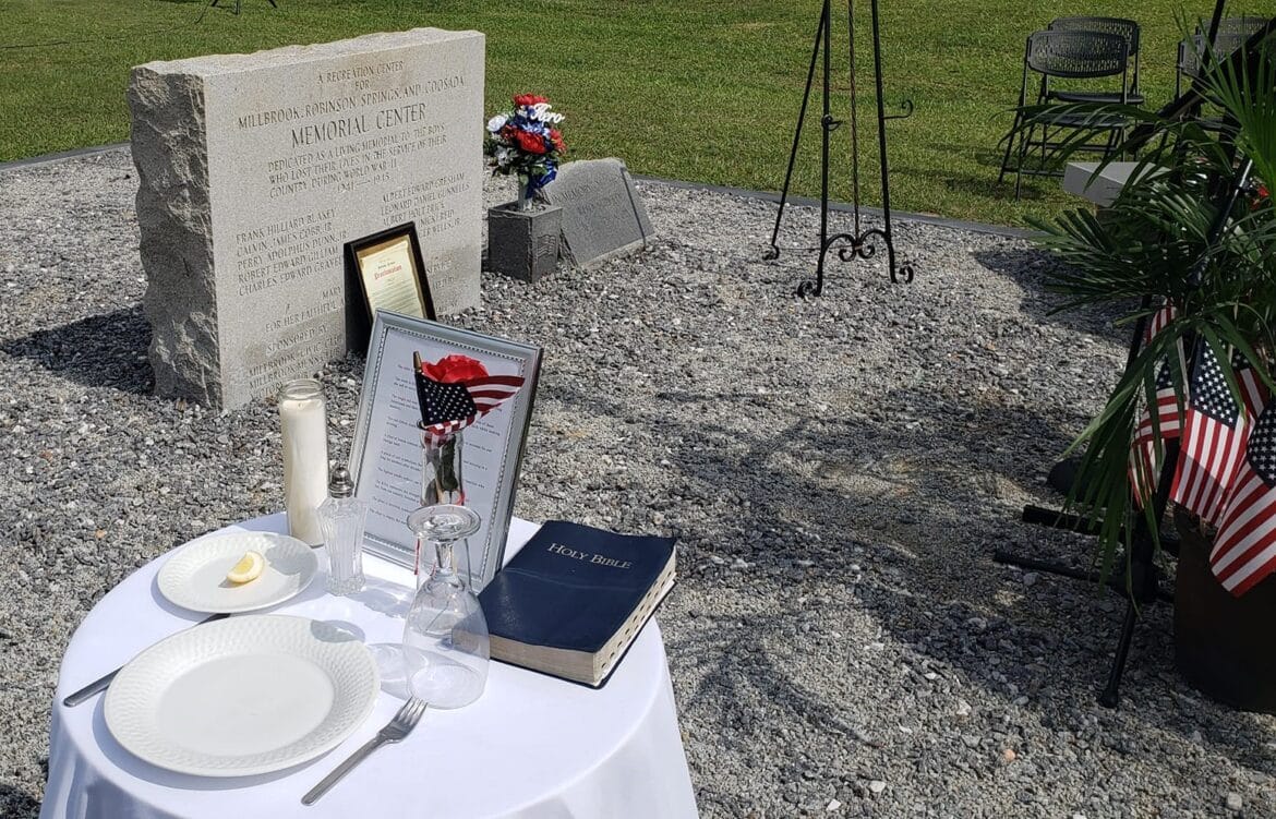 He spoke of the Missing Man Table, also known as the Fallen Comrades Table, which was on display next to the memorial monument.