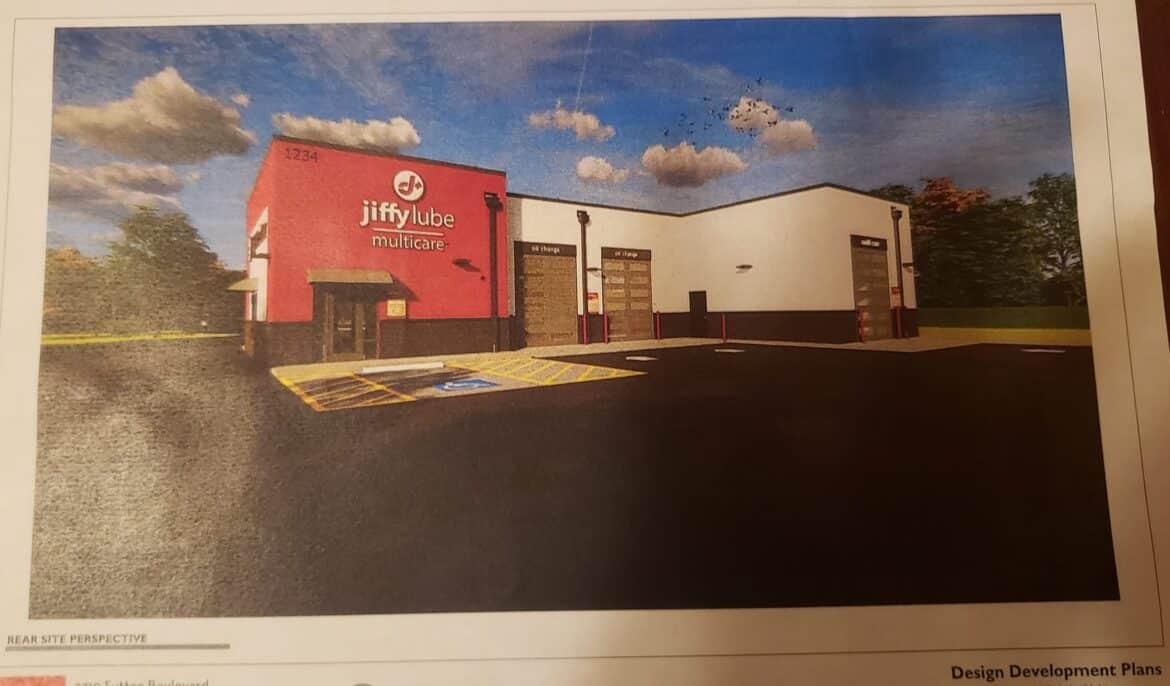 Jiffy Lube is an oil change facility and will have three bays for customers. The plan is to construct and open the facility this year. They will hire six to eight employees for the business.