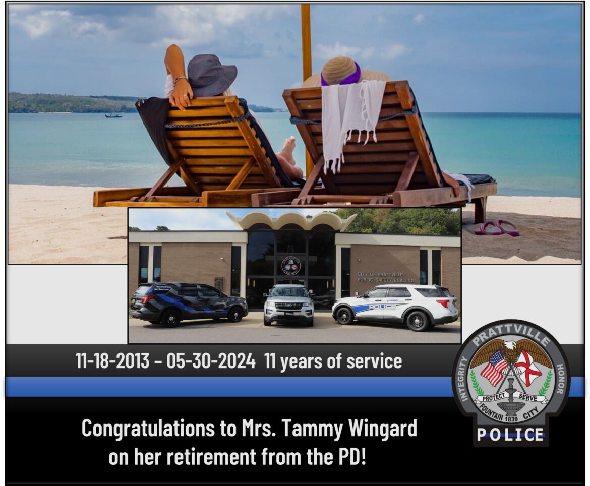 From the Chief of Police and every officer here at the Prattville PD, we want to congratulate and thank Mrs. Tammy Wingard, who has served as the Administrative Assistant to the Chief of Police for 11 years of faithful service, not to just the PD but the citizens of Prattville. Being camera shy, we opted instead to showcase where she ends up planning on moving near and hope she enjoys her time back near the Gulf.