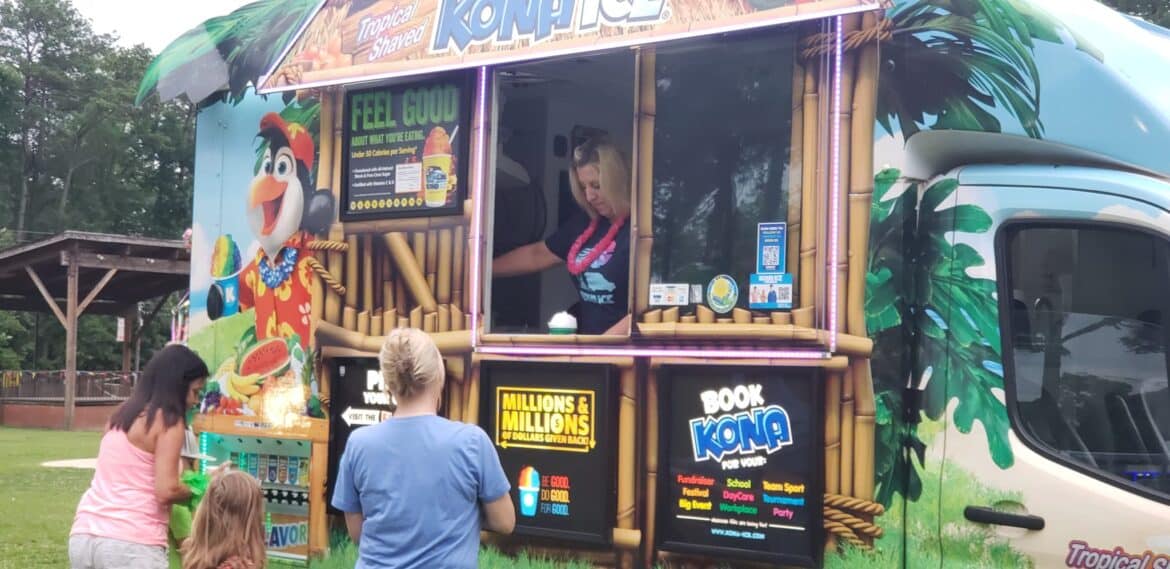 Special Events and Cultural Arts Director Danae Morgan was busy handing out necklaces and bracelets. Front Porch Grill and Kona Ice food trucks kept a steady business as well.