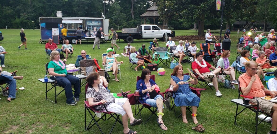 In lawn chairs and on blankets, neighbors visited, new friends were made, and old acquaintances smiled at familiar faces. It was a great evening for relaxing with a tropical theme.