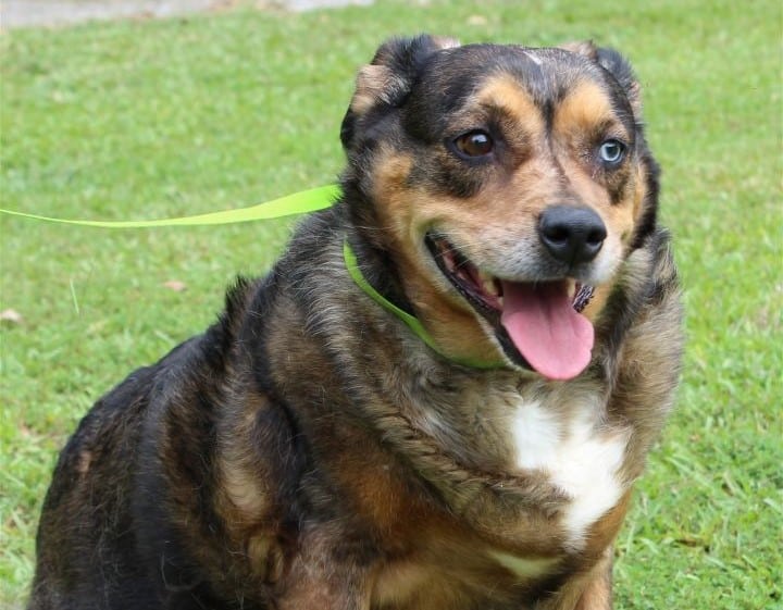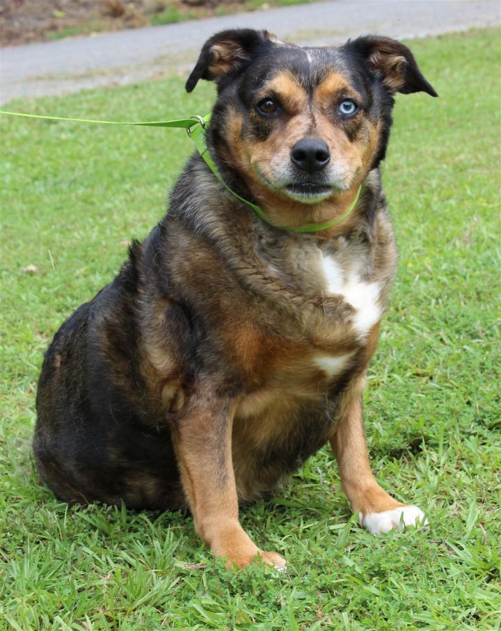 Lucy is a 7-8 year-old female Aussie (Australian Shepherd) mix who has already been spayed. She is an owner turn in because the primary owner she was so devoted to passed away. Lucy has a medium length coat that is mostly black with brown and tan markings with some white, and it is super soft. She weighs 70 pounds; and she does need to lose some weight. Lucy is very timid and shy because she is overwhelmed by the all the sights and sounds at the shelter. She will need a patient owner who will give her time to adjust and decompress in her new home. Lucy is a very sweet dog who just needs time and love to adjust to her new life. She would be great with other dogs and older children once she adjusts to her new home. Lucy is house trained and knows how to use a doggy door. She is very well behaved, calm, and great on a leash. Lucy is going to bond very quickly with her adopter because she craves human attention and kindness. PLEASE consider adopting this beautiful sweetheart of a dog who needs her very own home and person. Lucy will supply love, devotion, and companionship to her new best friend once she understands you are only trying to help her.