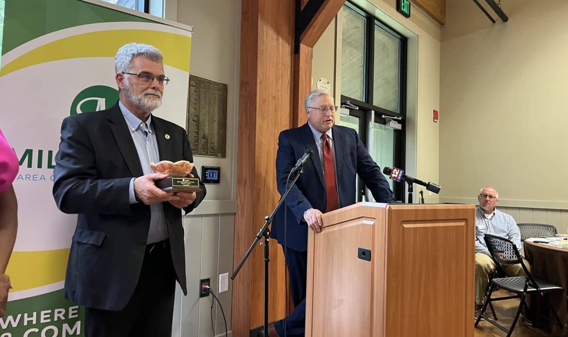 At the end of the awards ceremony, Marjorie Bowden passed the gavel as the 2023-2024 chair, to Steve Mullis who will be the 2024-2025 Chair of the Millbrook Area Chamber of Commerce.