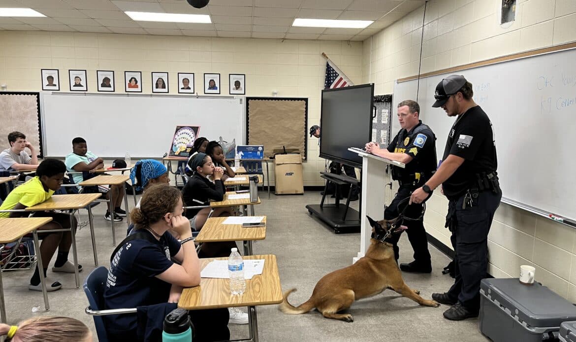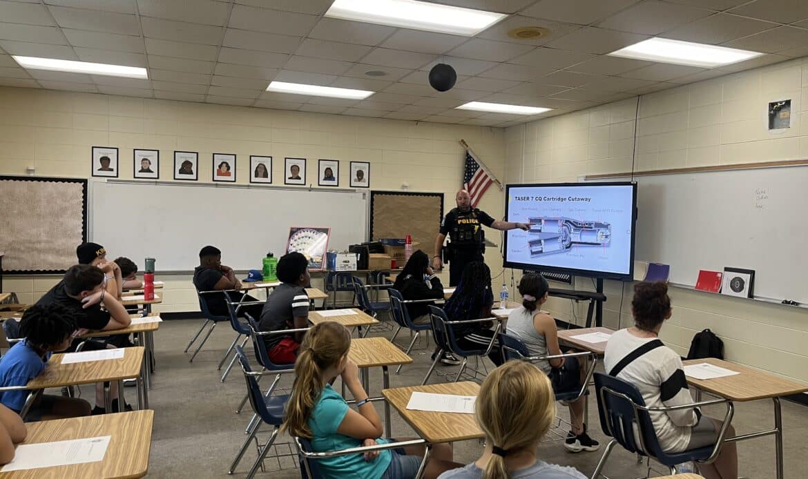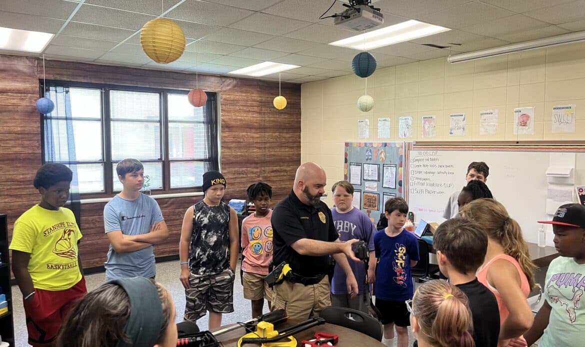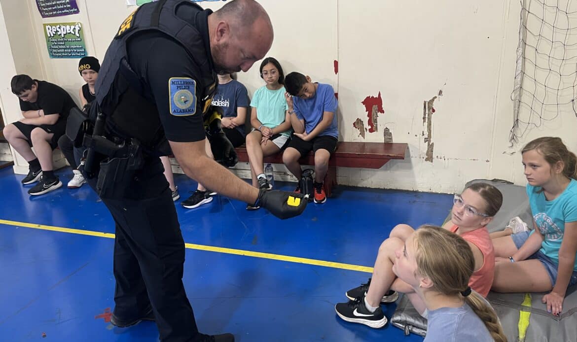 While many situations police officers face can be intimidating or scary, Lieutenant Stephen Youngblood and SRO Corporal Kirsten White with the Millbrook Police Department, made hostage negotiation, car stops and searches, crime scene investigation and even baton and handcuffing educational and engaging for the young minds of Millbrook.