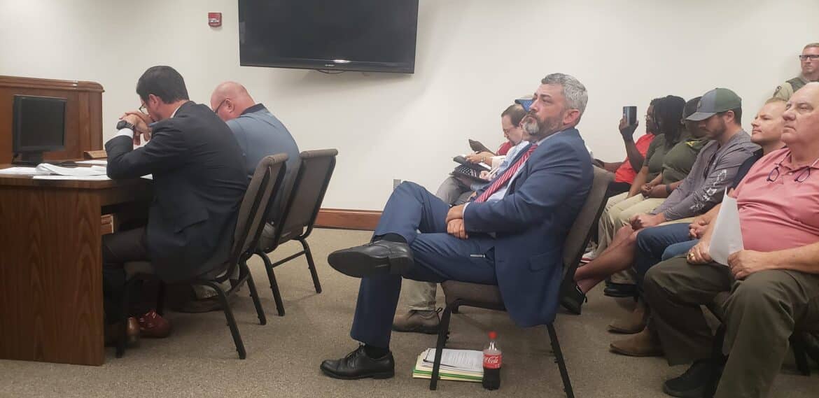 Richardson, Harrell, and many members of the packed room were visibly angry, some making audible comments. Sheriff Harrell walked out of the room, but his attorney remained.