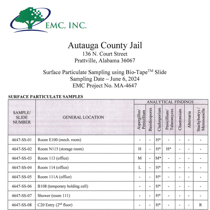 Since June 6, 2024, when prisoners began being evacuated from the Autauga Metro Jail due to health and safety concerns by Sheriff Mark Harrell, two reports have come out from different agencies regarding the findings of jail tours and inspections. The HVAC system was shut down on April 1, prior to prisoners being evacuated due to the suspicion that several molds, including Black Mold, were present in the building.