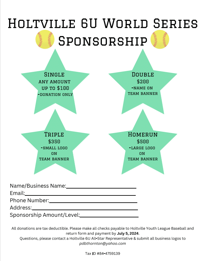 Our fundraising will help relieve the financial burden of hotel rooms, tournament fees, uniforms, and helmets needed to proceed to the world series for our young athletes. We have sponsorship and donation opportunities for individuals and businesses.