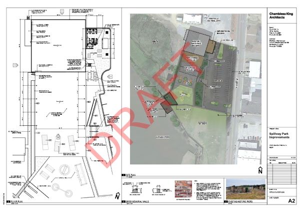 The park will have additional parking for downtown, a walking path along 4th street with a green space and a boardwalk along the Autauga Creek, an outdoor pavilion venue with public restrooms and renovations to the warehouse are all in the works for Spillway Park.