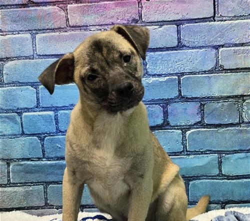 Jaimie is a six-month-old Terrier mix that came to us as one of a muti-dog intake. She is a small gal, only about 25 lbs so should be in the 30-35 lb range when fully grown. Great with other dogs, bouncy, talkative little gal – had a very high-pitched bark when she wants attention. Playful and wants to be a part of a loving family.