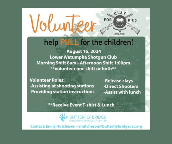 “The most rewarding part of my job with Butterfly Bridge CAC is being a part of a child’s story and seeing them overcome the most horrible things you could ever imagine, but not letting it define who they are for the rest of their lives. This event helps to support our Autauga and Elmore County offices. The money raised goes directly back to these offices so that we can provide the crucial services needed for the children and families we serve,” Hutcheson said.