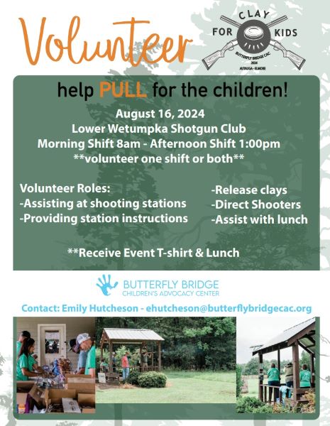 Butterfly Bridge Children Advocacy Center, or Butterfly Bridge CAC, will be hosting their 7th Annual Clay 4 Kids Fundraiser benefiting Elmore and Autauga Counties.