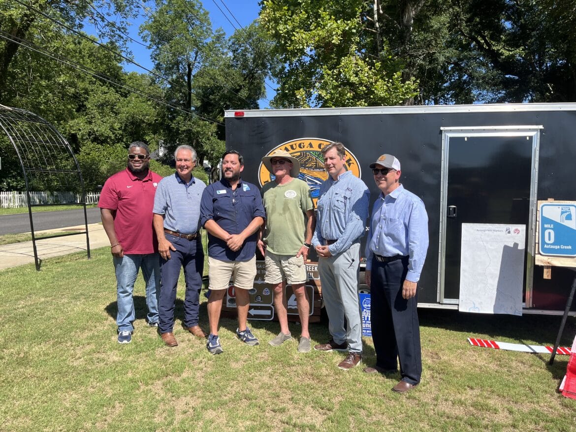 Senator Clyde Chambliss and State Representative Jerry Starnes were both present to send off the paddlers. Both Chambliss and Starnes were imperative in the funding for the Mile Marker Program, now fully installed along the Autauga Creek trail.