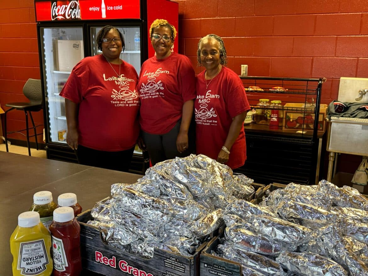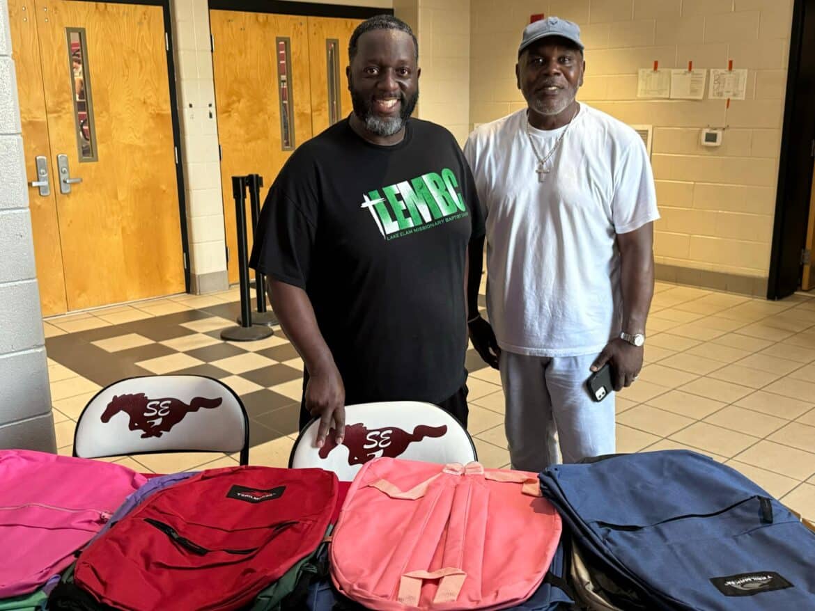Dr. Derwin Perry is the Pastor for Goodship Missionary Baptist Church and is the SEHS Football Team Chaplain. Gary Jackson is the Pastor for Lake Elam Missionary Baptist Church. Members of their churches came to help volunteer their time at the event by passing out backpacks, supplies, and food to the community.