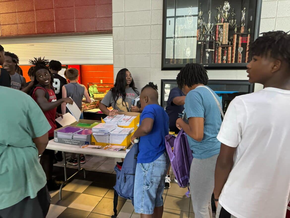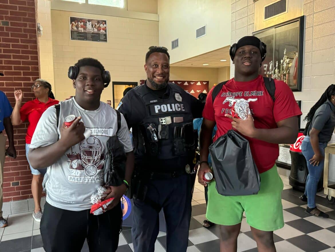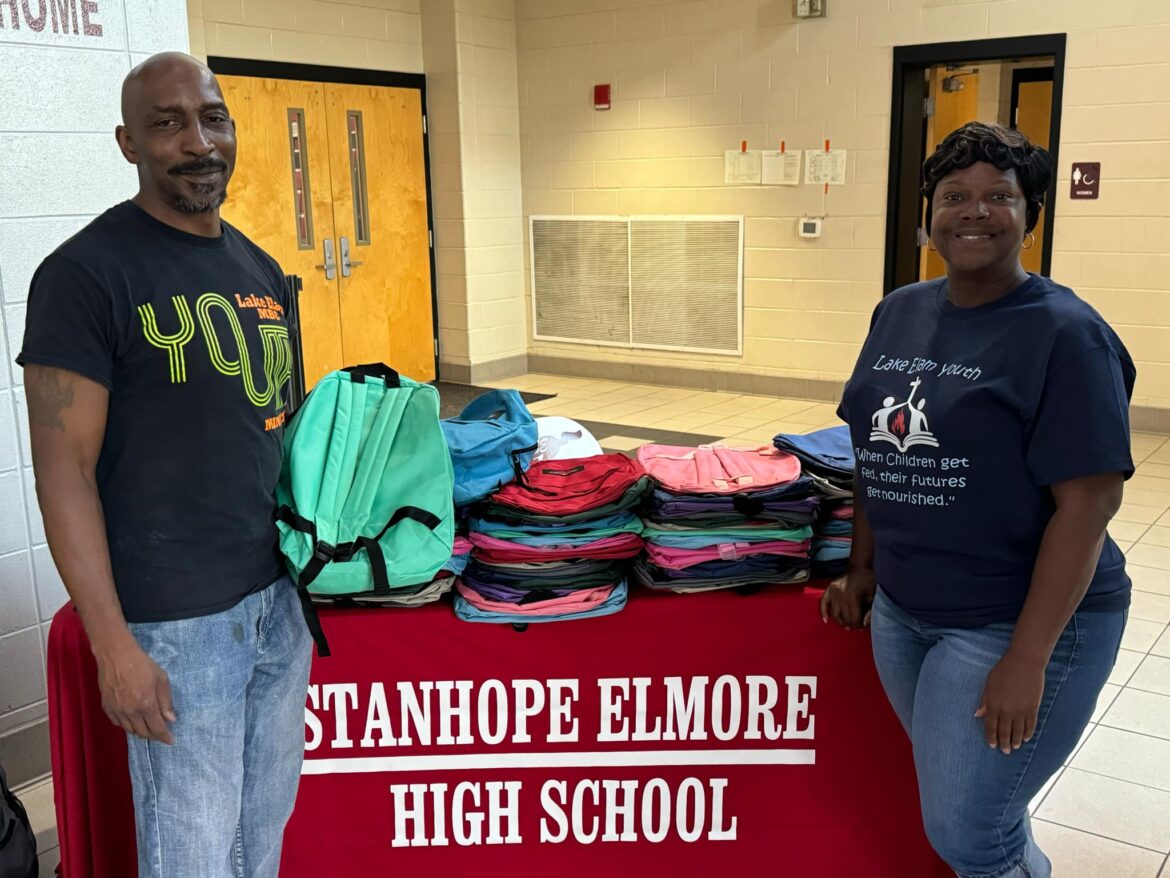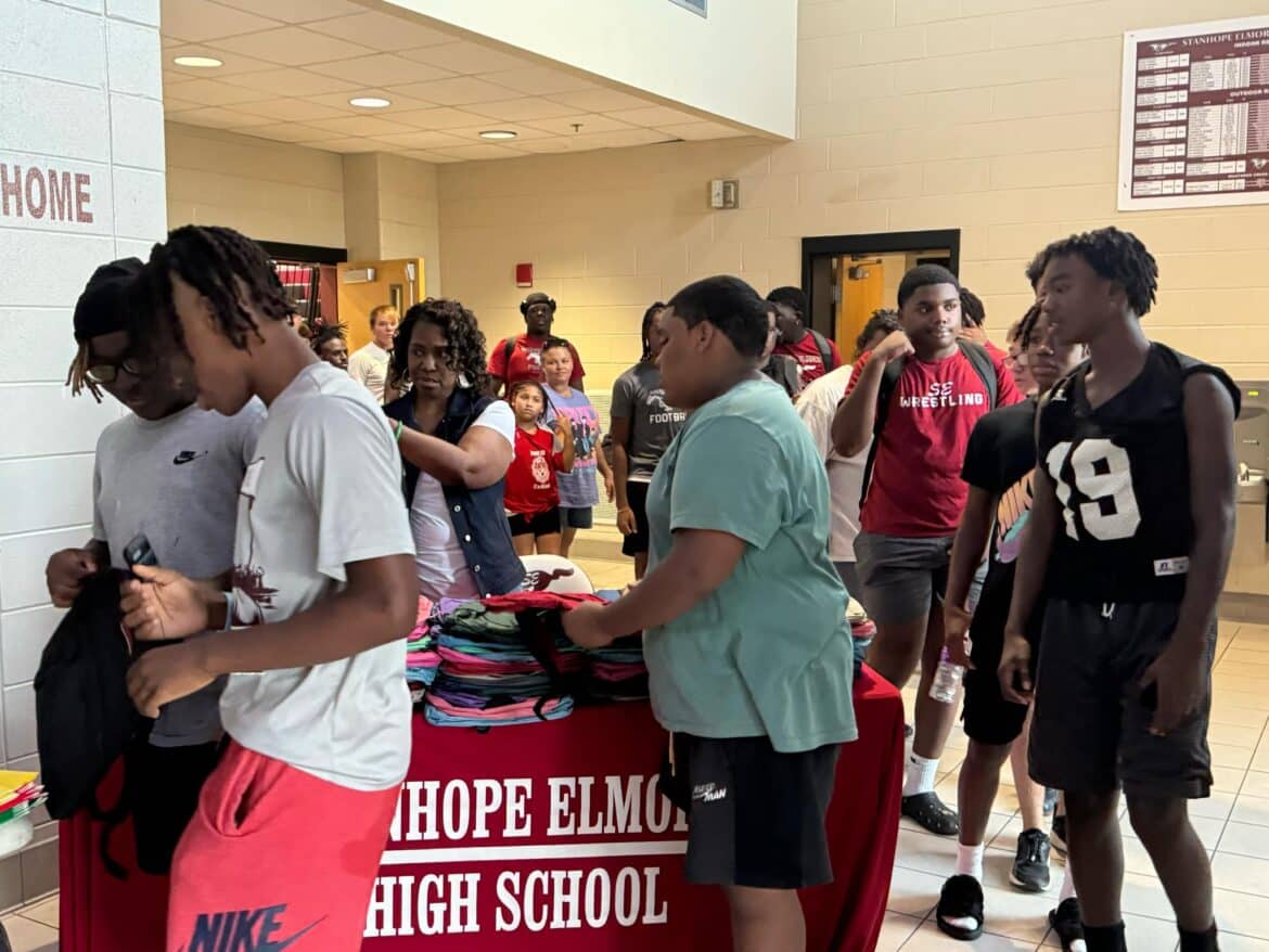 The second annual FREE back to school event for the community was held at Stanhope Elmore High School SEHS Tuesday. Goodship and Lake Elam Missionary Baptist Churches sponsored the entire event. Bookbags, school supplies, hot dogs, chips, and drinks were given out to all children and families. Coach Hunter Adams introduced some of the SEHS Varsity Football team members and the SEHS Basketball team at the event. Both churches made sure that the students were well equipped for the upcoming school year.