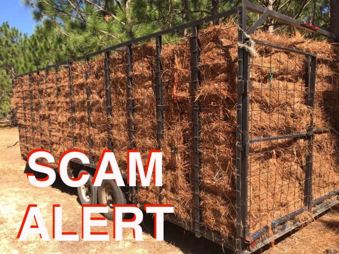 Reminder to all that door to door sales schemes like this involve deception and intimidation, so don’t fall for it if someone with a truck and wire trailer comes by asking if you want pine straw put down. Politely tell them “no” and call us so we can kindly inform them that their business is not welcome.