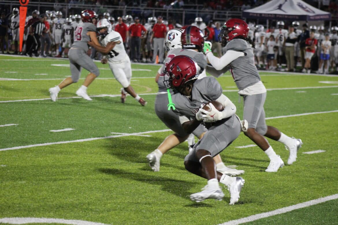 Clinging to a four-point lead early in the 4th quarter, Pike Road faced a 3rd and 23. They ran a draw and picked up 24 yards. On the next set of downs, the Patriots faced a 3rd and 9 and the quarterback ran for 10 yards. It looked like the Patriots were driving for a two-score lead, when they faced a 4th and 3 inside the Prattville 30-yard line. The Lions defense held, and got the ball back, but this time the Lions’ offense went three and out and punted the ball away. The ball bounced on the turf and hit a Pike Road player. The Lions recovered at midfield.