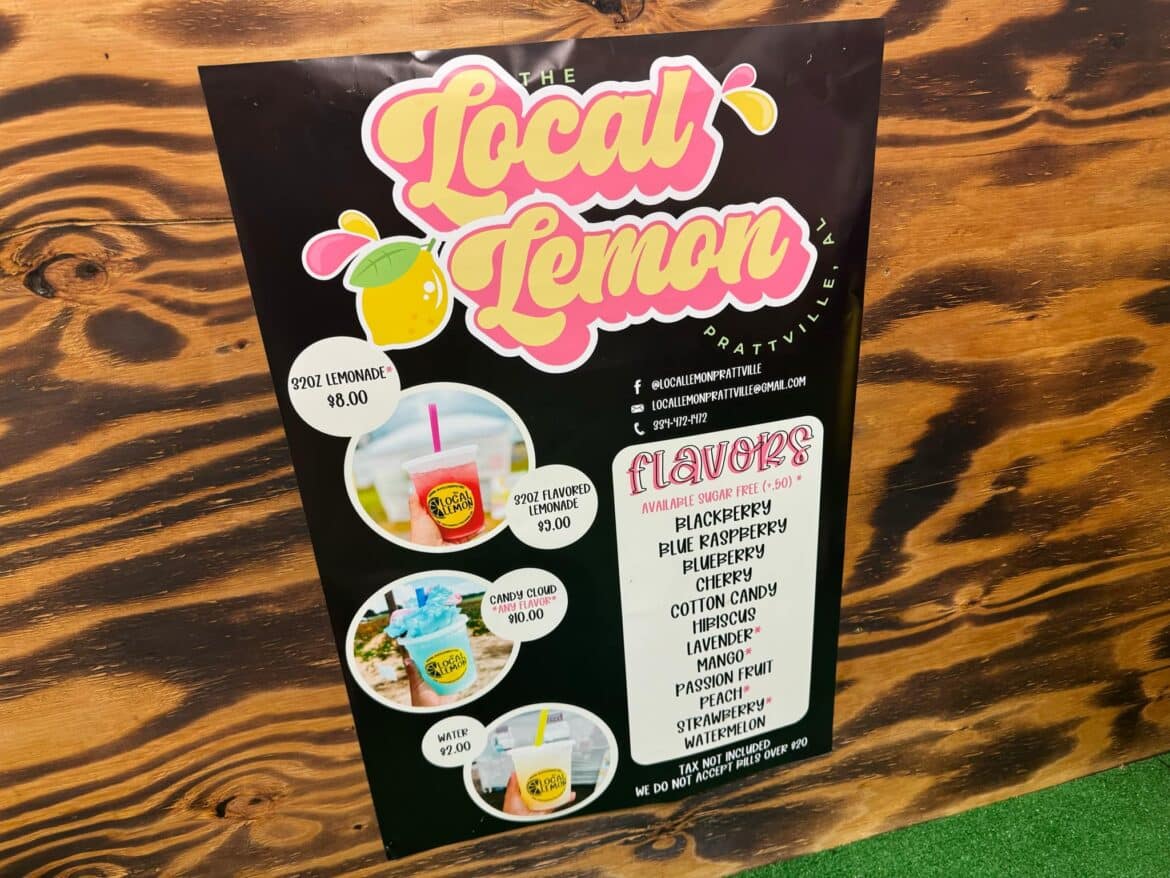 Follow them on Facebook to stay updated on all upcoming events, including frequent giveaways! Their Facebook page is at: https://www.facebook.com/locallemonprattville. You can also reach out to them by phone at: (334) 472-1472 or email them at: [email protected].