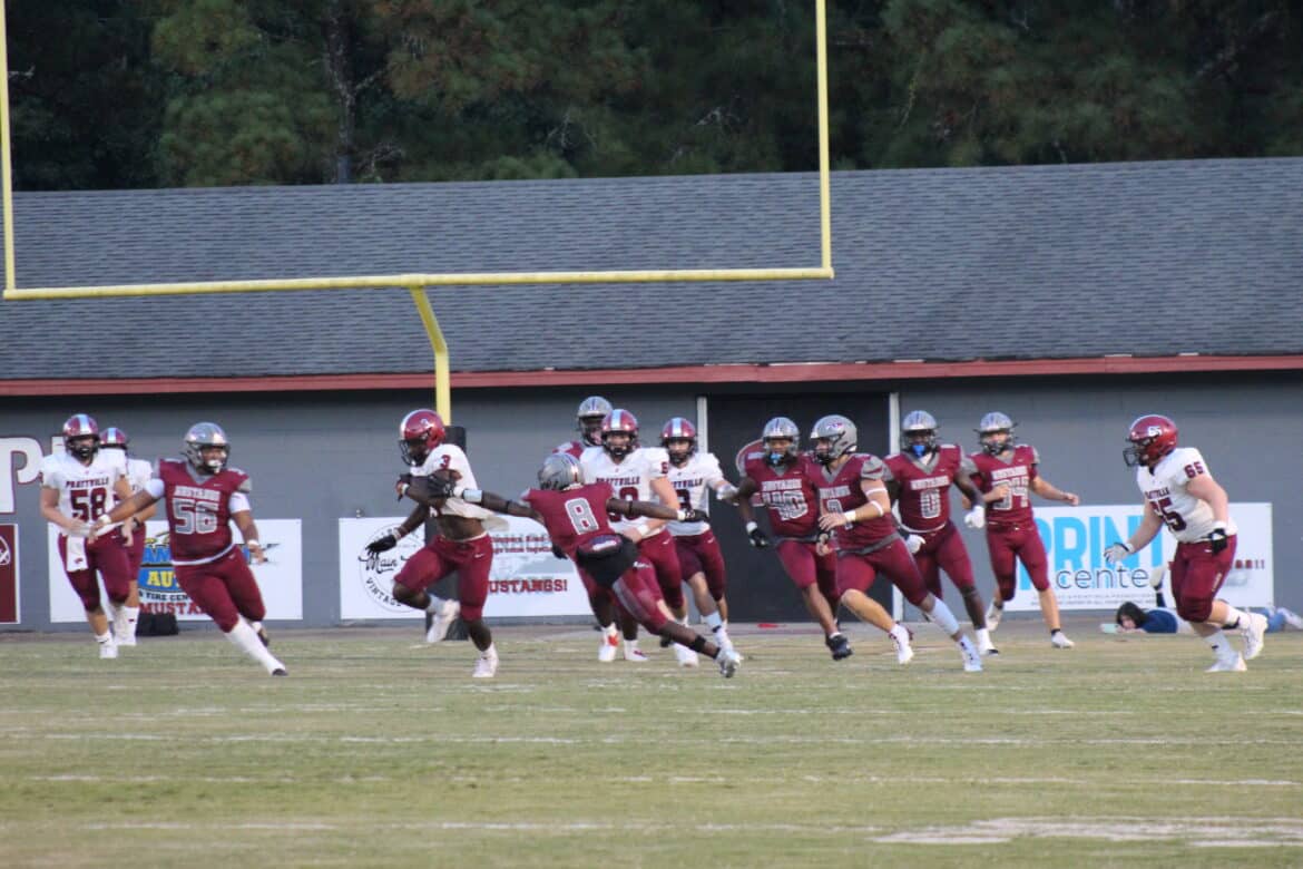 Prattville’s offense had to punt for the first time late in the 3rd quarter, but the snap sailed over the punter’s head and the Mustangs were able to start their next drive at the 11-yard line. McQueen scored on the next play to cut the lead to 21-7.