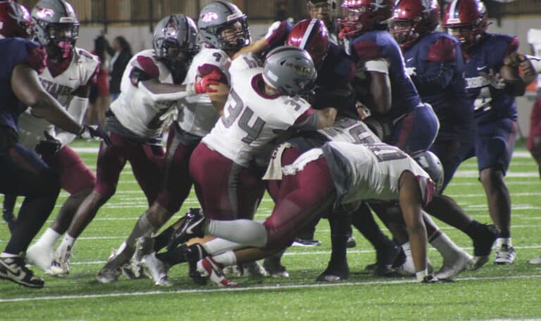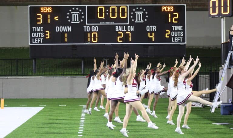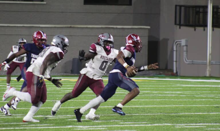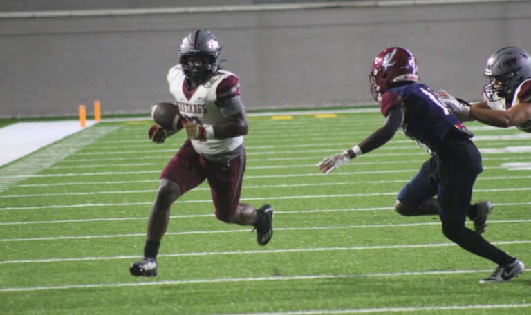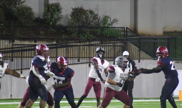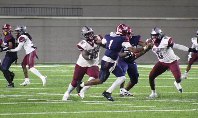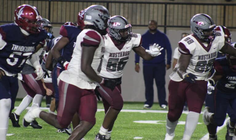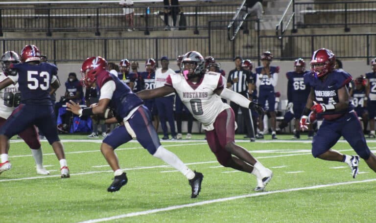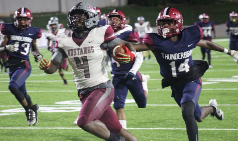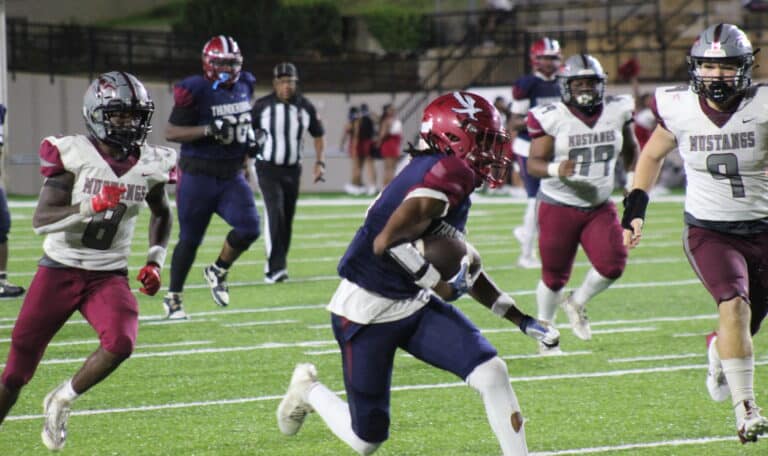 The Mustangs’ final points in the first half came on special teams, when Demarion Thomas blocked a punt and returned it for a touchdown. The Mustangs held a commanding 24-0 lead at the break.