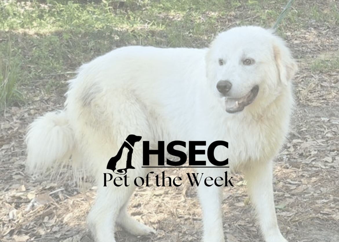 Bear is an 80 lb, 1 1/2 year-old male Great Pyrenees that came to us as part of a multi-dog intake. He is a super sweet boy, loves people, good with SMALLER FEMALE dogs (no male dogs or large female dogs please), seems fine with cats but is NOT good with chickens as thinks they are quite tasty. He was an outside dog but did not live with livestock so no livestock guarding experience. He is also not formally housetrained but am sure he can quickly learn as he loves being with his people.