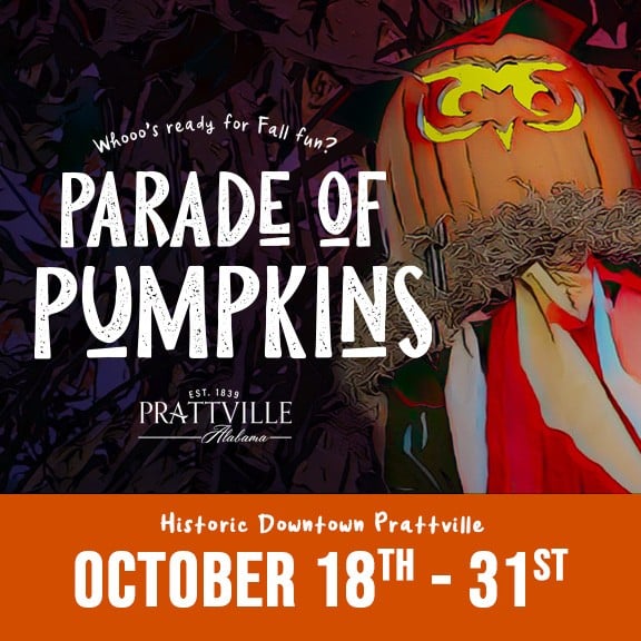 Join us for the 6th Annual Parade of Pumpkins in Historic Downtown Prattville from October 18th-October 31st. Festive
