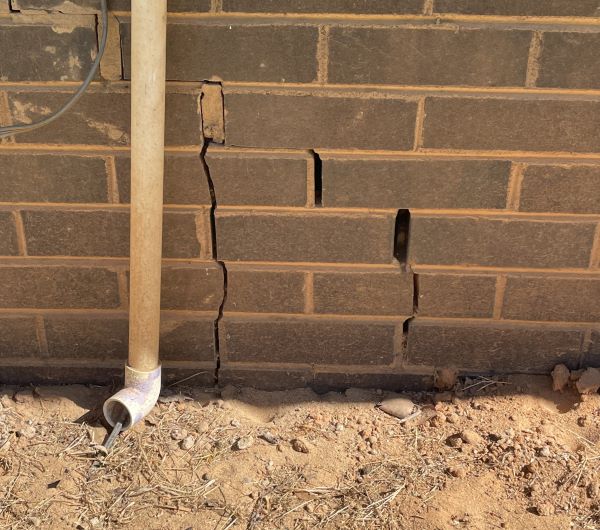 Some of the damage Day Structures cited in the email includes major cracking in the foundation walls along the north and south sides adjacent to the west end, and downward deflection of the floor slab causing the west end wall to rotate forward.