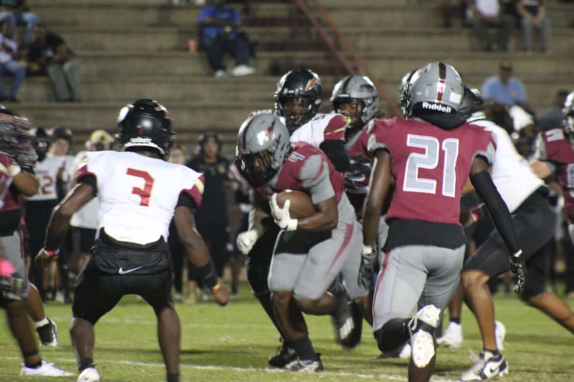 The Mustangs got on the scoreboard first in the opening quarter with a 3-yard score by Arthur McQueen. After an 11-yard touchdown pass for Russell County in the 2nd quarter, the Mustangs mounted another long drive. Damarrian Barnes had a 30-yard run for the Mustangs and later scored a 6-yard touchdown with under two minutes remaining. The extra point put Stanhope Elmore ahead 14-6.