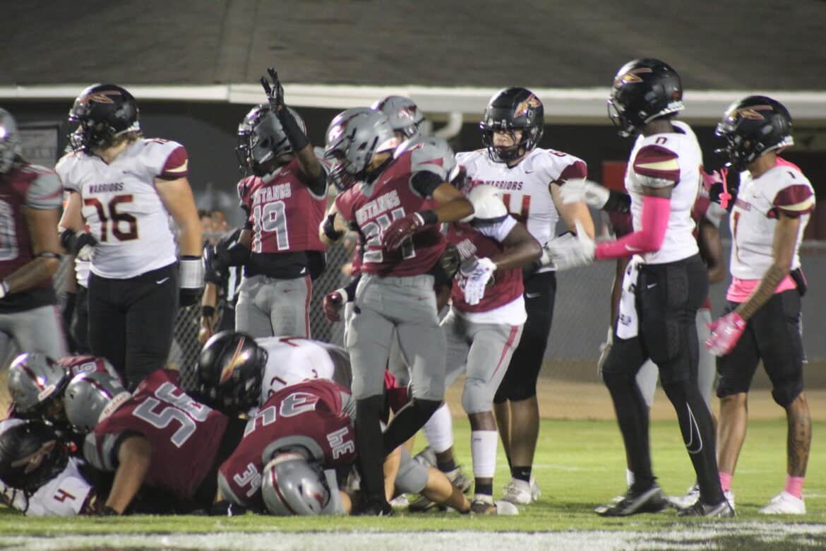 The Mustangs responded with a long drive that ended with a 4-yard touchdown from McQueen to cut the lead to 35-28 with 7:30 minutes remaining in the game. The Warriors took almost five minutes off the clock until the Mustangs defense force the punt that was downed on the 1-yard line.