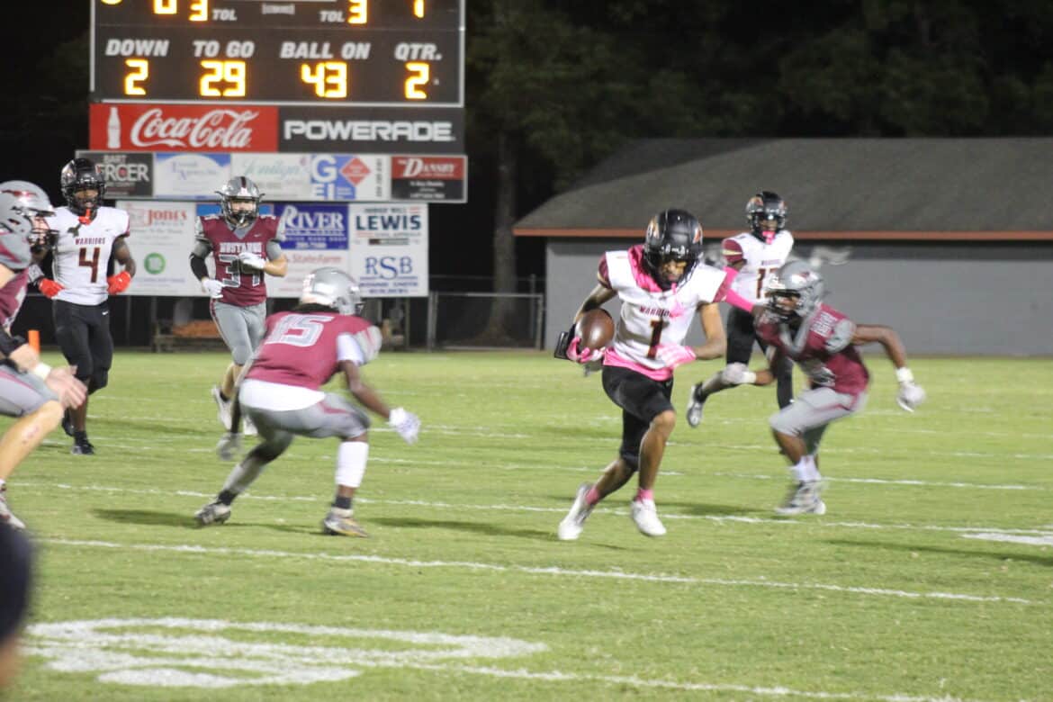 To make matters worse, starting quarterback Zac Holcombe suffered an injury against the Warriors in the 1st quarter and didn’t return. And despite all that, the Mustangs trailed by one touchdown and had a chance to tie the game when Russell County punted the ball to Stanhope Elmore with less than three minutes remaining in the game. Unfortunately for the Mustangs, the punt rolled all the way to their 1-yard line. With the starting quarterback out of the game, the Mustangs attempted their first pass of the game after moving the ball to the 15-yard line. The pass was intercepted and returned to the 4-yard line. The Warriors scored on the next play, and pulled out the region win 42-28.