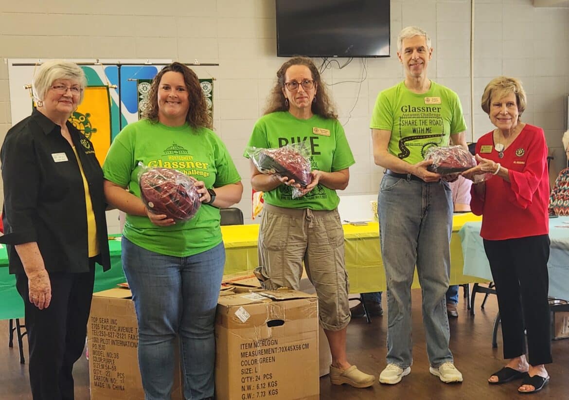 The Pilot Club of Prattville, at their October 5 meeting, presented 50 bicycle helmets to the Montgomery Bicycle Club. MBC refurbishes and re-homes unwanted bikes and these helmets will be given to individuals who adopt bikes or people who don’t have helmets or have outgrown their helmet.
