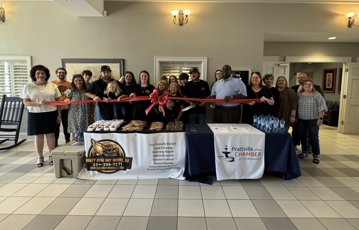 Today, County Road Dirt Works, LLC marked a significant milestone with a ribbon-cutting ceremony at the Prattville Area Chamber of Commerce. The event, attended by local community members and Chamber representatives, included a warm reception featuring cookies and homemade banana nut bread.