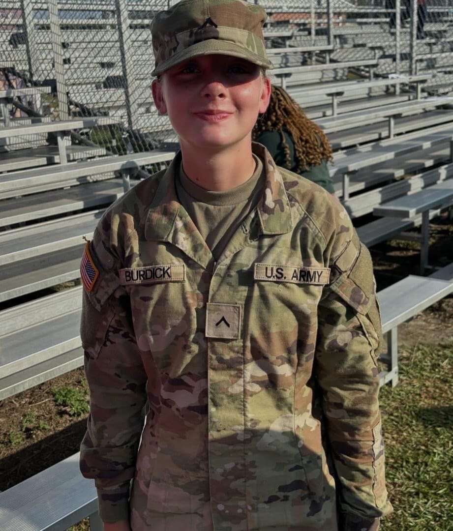 Josie is the daughter of Joe and Jessica Burdick and sister to Jolie and Joel Burdick. She graduated from Stanhope Elmore High School in May of 2024. She is currently attending Airborne school at Ft. Moore, Columbus, Georgia, where she is training to be a paratrooper.