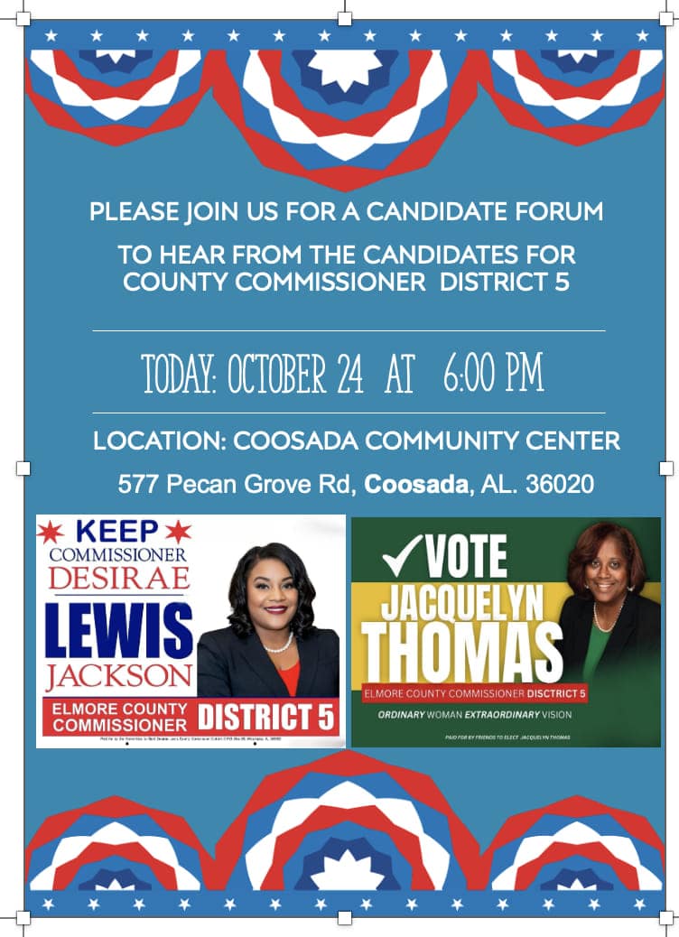 A candidate forum will be held this evening at 6 p.m. for the Elmore County Commission seat in District 5.