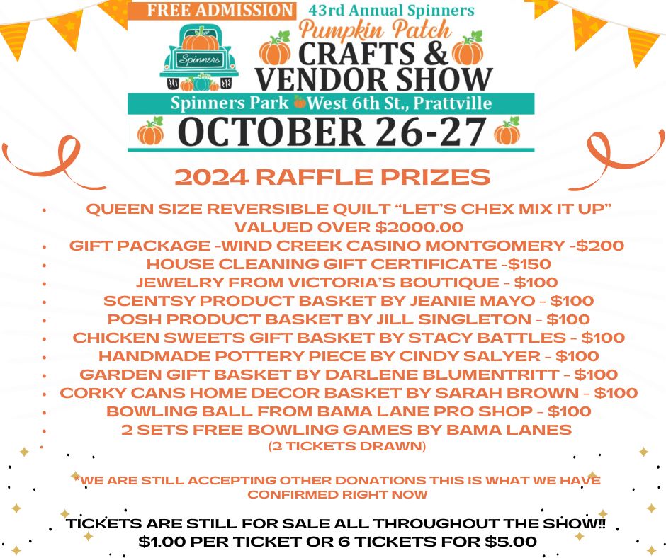 This weekend marks the 43rd annual two-day Spinners Pumpkin Patch Crafts and Vendor Show at Spinners Park! The address is West 6th Street in Prattville.