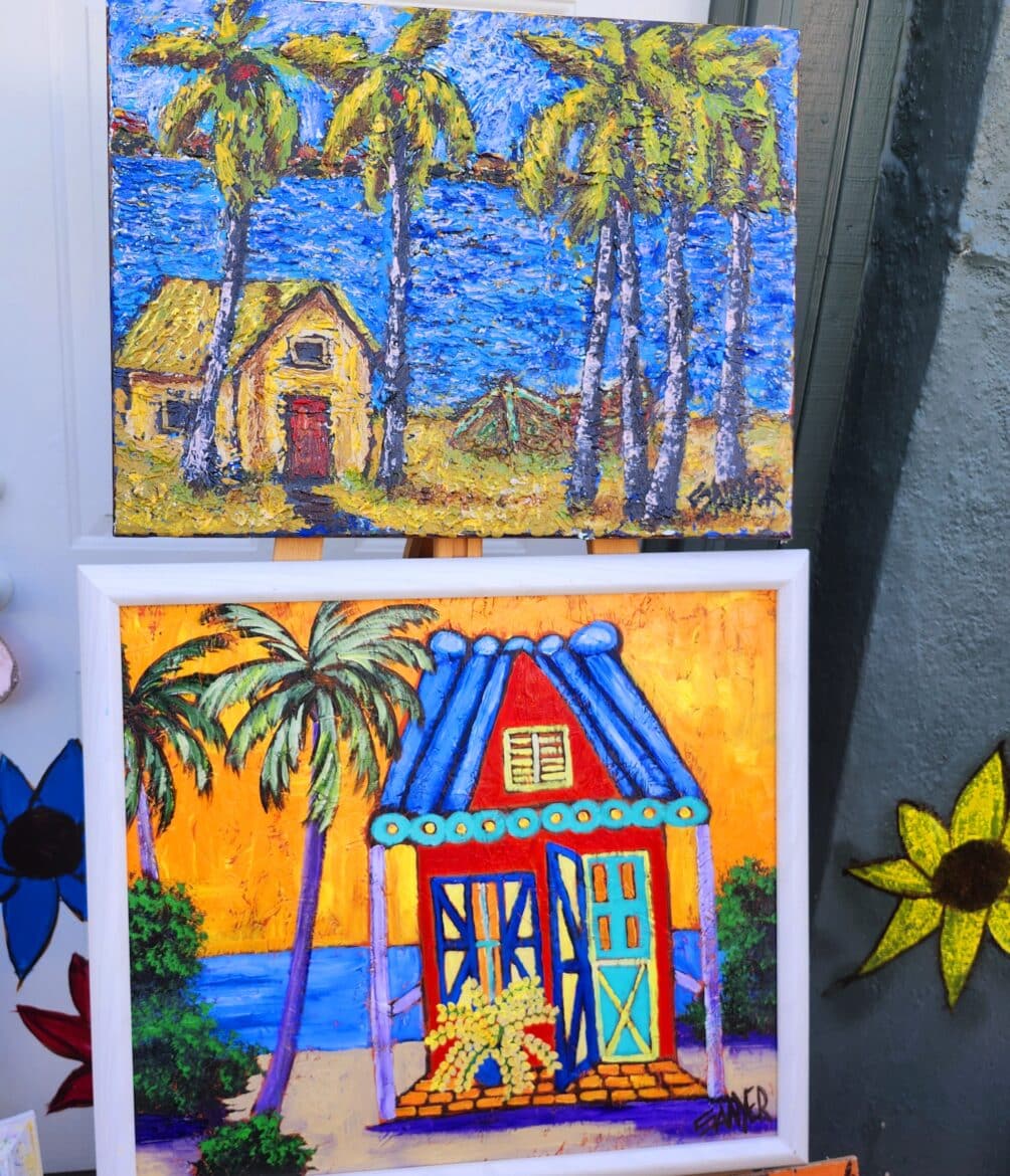 Sawyer’s most notable work is the Hollywood Fish. It almost always had a yellow background, with a fish wearing sunglasses and smiling. Many of his works also incorporated aspects of his life that he loved. For example, many of his paintings contained a cross or a church.
