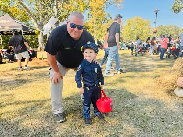 Top Photo: Millbrook Chief P.K. Johnson visits with a fellow “officer” during the Boo Festival at Village Green.