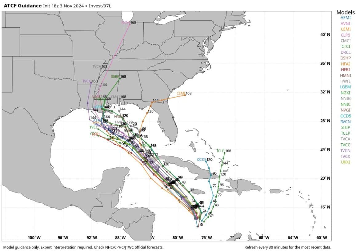 The hurricane regional models are very aggressive, however, their intensity predictions appear overdone, at least in the short term. Most global models show the system becoming a weak, broad low as it nears the U.S. coast, mostly a rain-maker.