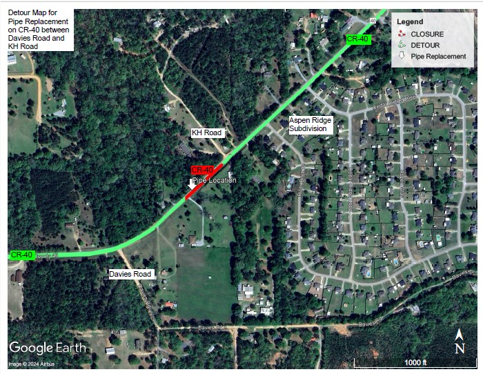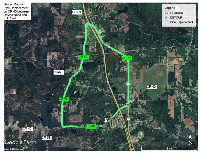 Autauga County, AL – In our ongoing commitment to ensuring the safety and integrity of our local roadways, the Autauga County Engineer’s office has identified a culvert pipe located on County Road 40 between Davies Road and KH Road that is structurally deficient.