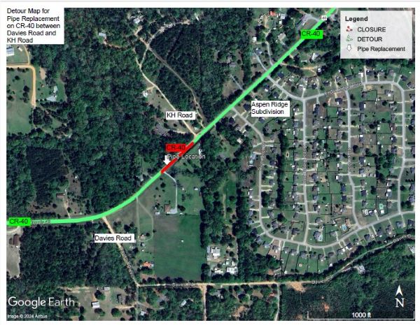 Autauga County, AL – In our ongoing commitment to ensuring the safety and integrity of our local roadways, the Autauga County Engineer’s office has identified a culvert pipe located on County Road 40 between Davies Road and KH Road that is structurally deficient.