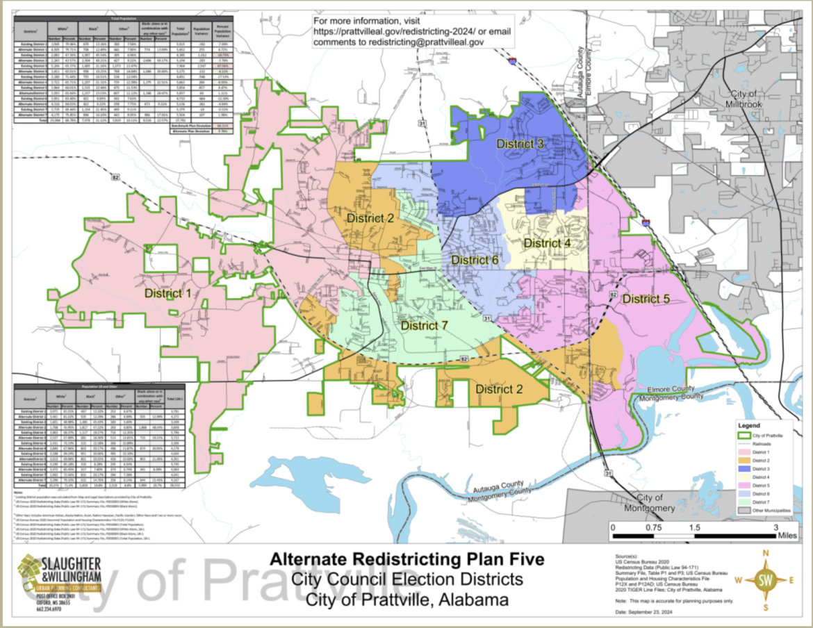 Due to the recent 2020 census and a large population influx, the City of Prattville has continued the process of redistricting they started in June of 2021. The last redistricting map was adopted in 2010.