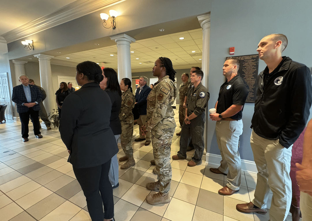 The ceremony included remarks from Prattville Chamber representatives David Lewis and Joe Matthis, Mayor Bill Gillespie, County Commissioner Jay Thompson, Chief Master Sergeant Winings, and Colonel Whittaker. In his opening comments, Joe Matthis expressed gratitude for the small yet impactful percentage of Americans who choose to serve in the armed forces. “Only about 7% of Americans participate in the military. We are grateful for each one of those and the ones before them,” said Matthis.