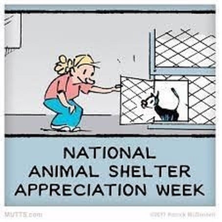 In the spirit of better late than never, last week was National Animal Shelter Appreciation Week and certainly deserves recognition, albeit a tad late. On a daily basis, Animal Shelter Staffs are working tirelessly helping the never-ending flood of homeless and unwanted pets, 365 days/year. Shelters provide a place for homeless and unwanted animals to go when no one else can take them in – the young ones, old ones, nice pets, vicious & scared, diseased, injured, starved, healthy – Shelters see them all. So please thank the staffs of Shelters in your area any day of the year, as besides helping animals in need they are also helping people, often with very little appreciation.