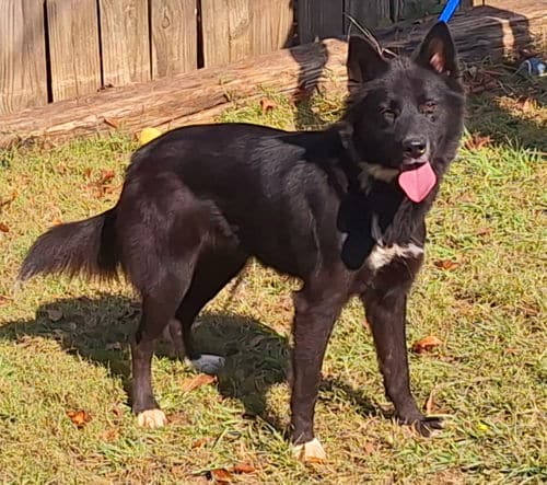 Annabelle is a one-year-old female Shepherd/Border Collie looking mix, about 50 lbs. She loves attention and being close, also loves to talk to you. Knows how to play fetch, likes squeeky toys. She is good with dogs her size or larger, but a big NO to cats.