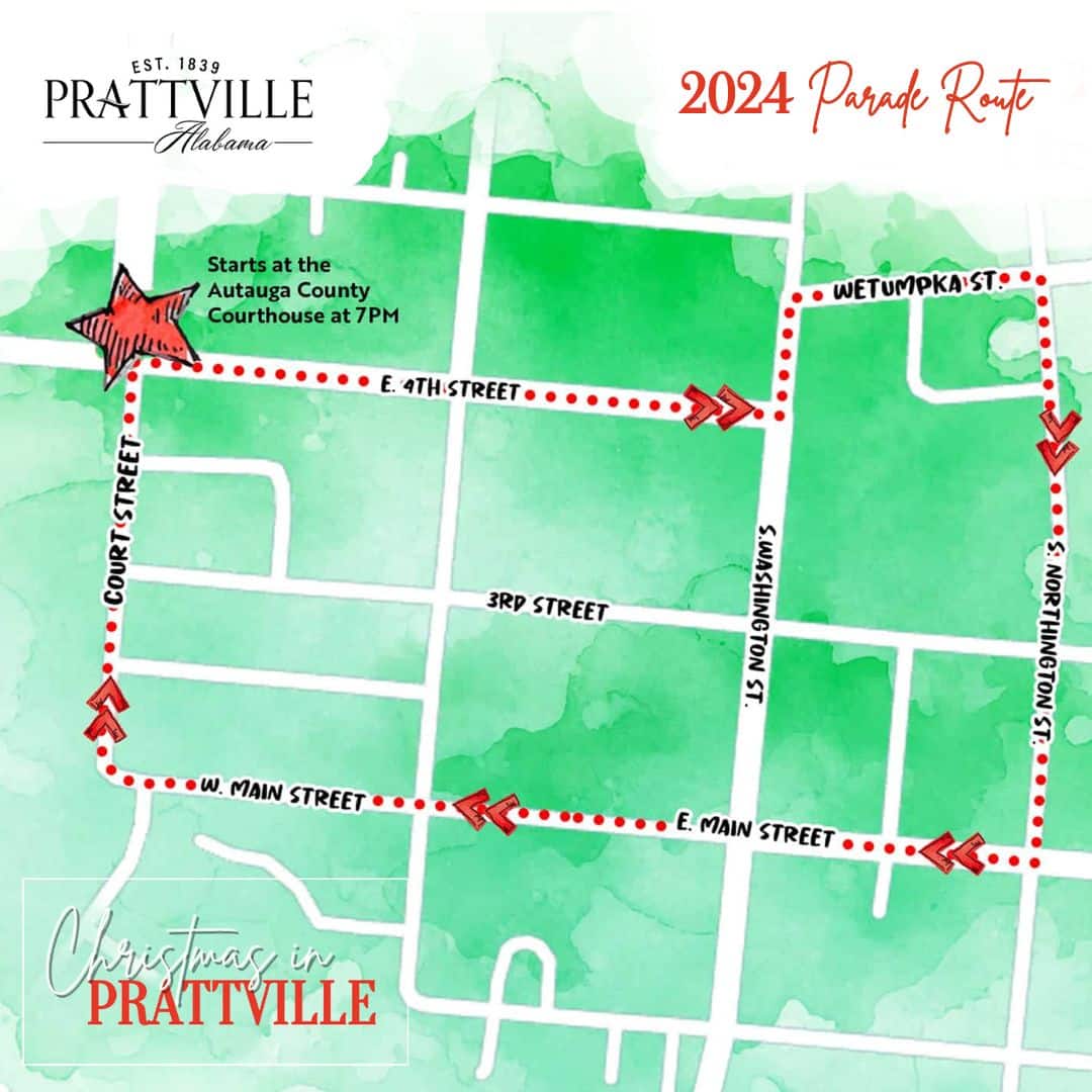 This year’s highly anticipated Christmas parade will begin at 7 P.M. on Friday, December 6. The parade starts at the Autauga County Courthouse and turn onto West 4th Street, then turn left onto Washington Street, and right onto Wetumpka Street. From Wetumpka Street it will turn right onto Northington Street and follow Northington until it reaches E. Main Street, then turn right on E. Main Street and go straight downtown until it ends at the courthouse. (View Parade Map)
