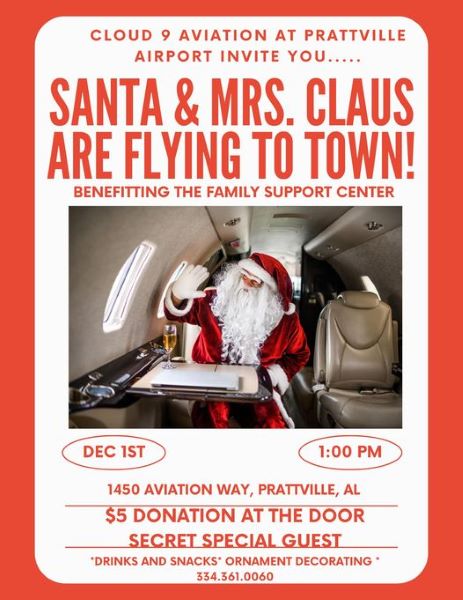 Santa Claus is coming to town! Singing loud for all to hear and spreading holiday cheer is the name of the game for Cloud9 Aviation at Prattville Airport. Sant and Mrs. Claus will be flying direct from the North Pole this year to make a special visit to the River Region in Prattville for some holiday fun.