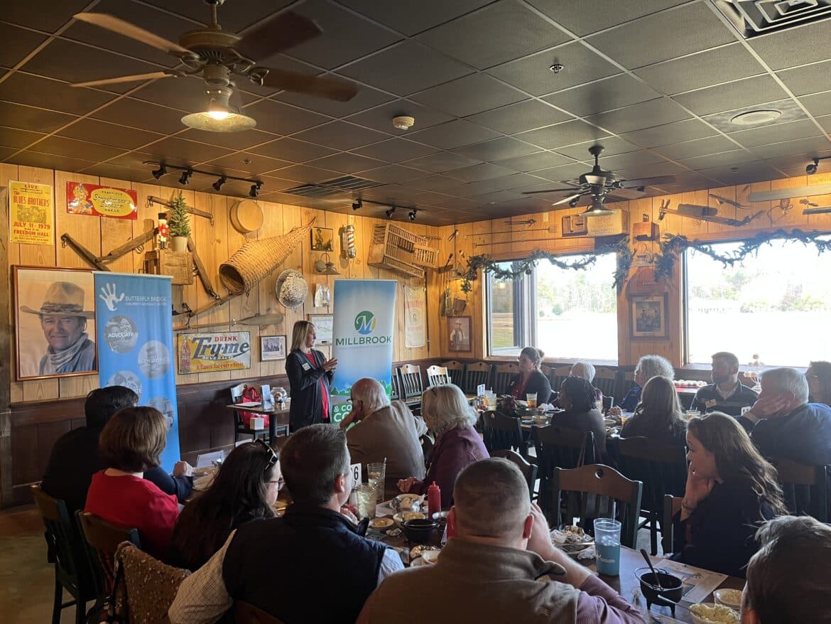 There was not a dry eye in sight at the Millbrook Area Chamber of Commerce’s annual Giving Luncheon, where Butterfly Bridge Children’s Advocacy Center, or CAC, was the focus of celebration this year. Over $2,500 monetary donations were given to the Butterfly Bridge CAC just by the attendees of the luncheon, furthering tearful thanks by Butterfly Bridge’s Assistant Director and Child Forensic Interview Specialist Emily Hutcheson.